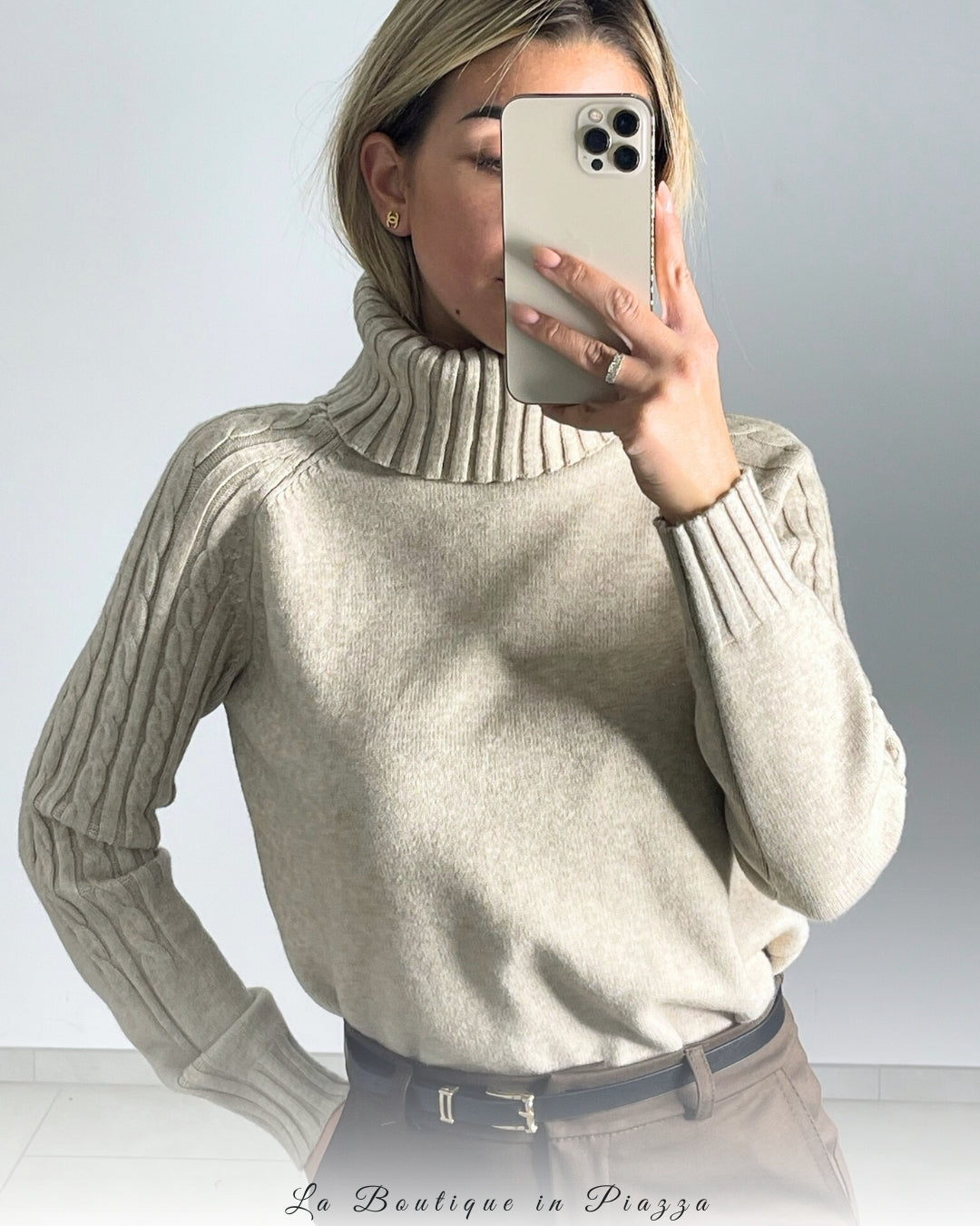 Collo alto, motivo a treccia e calore assicurato per tutto l’inverno.