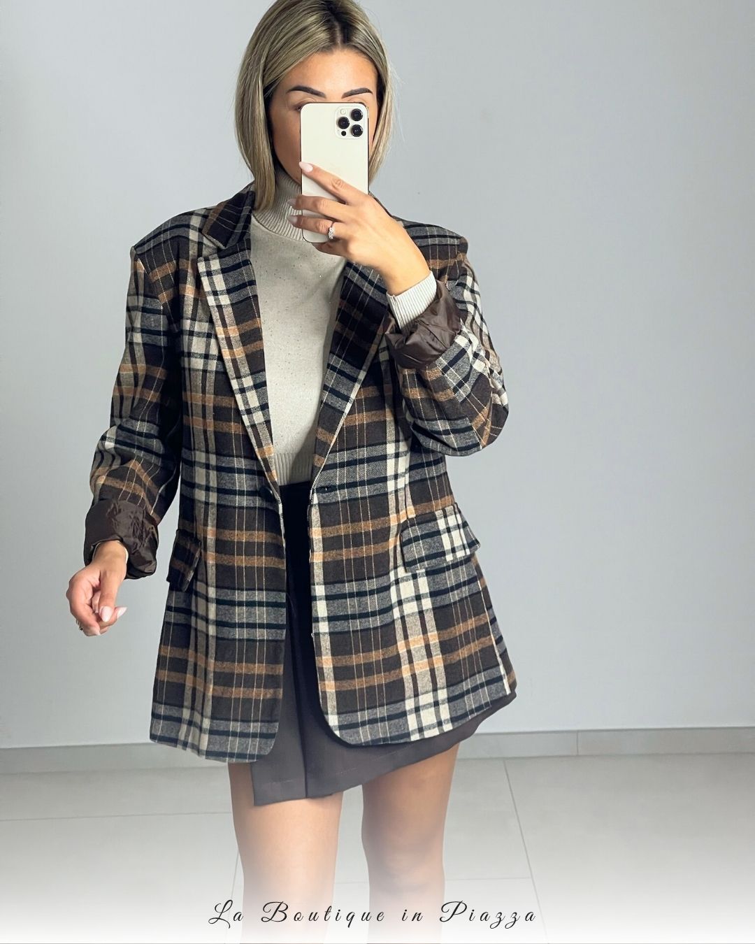 Taglio maschile e colori caldi: la giacca a quadri è un must per la stagione.