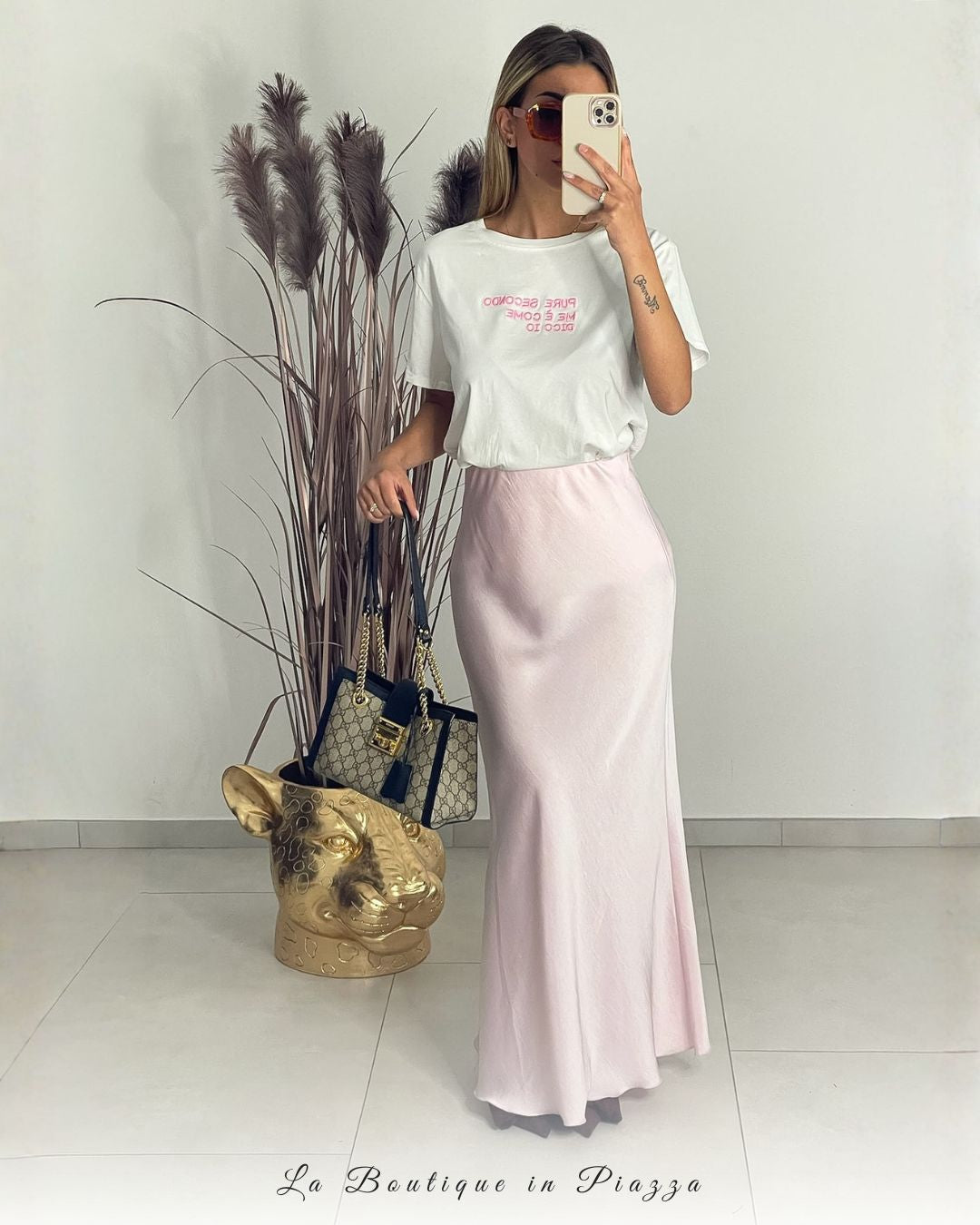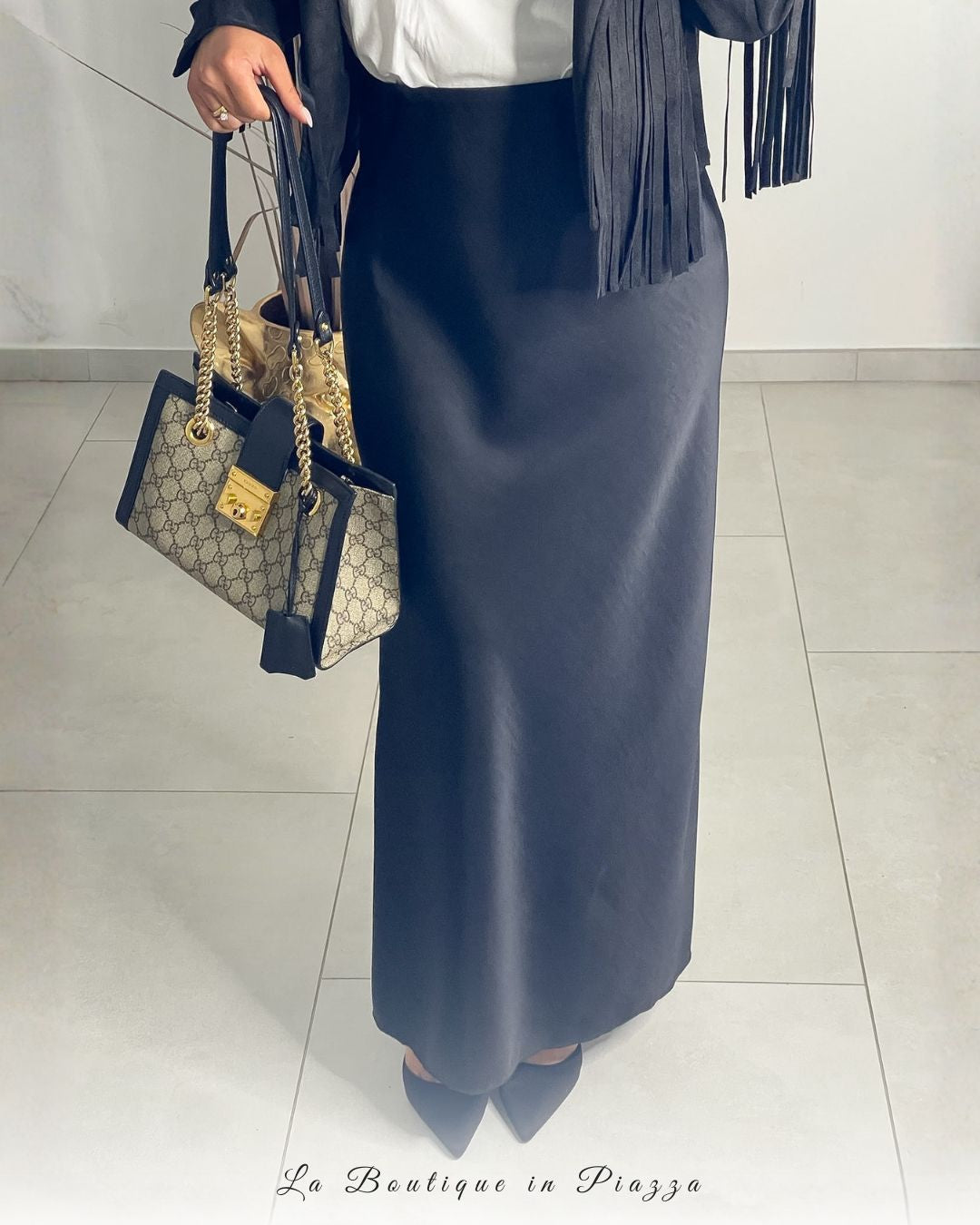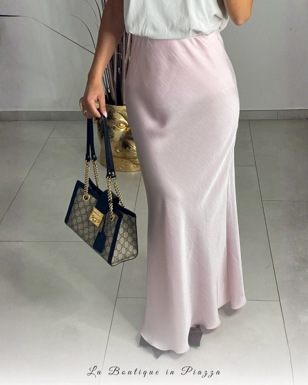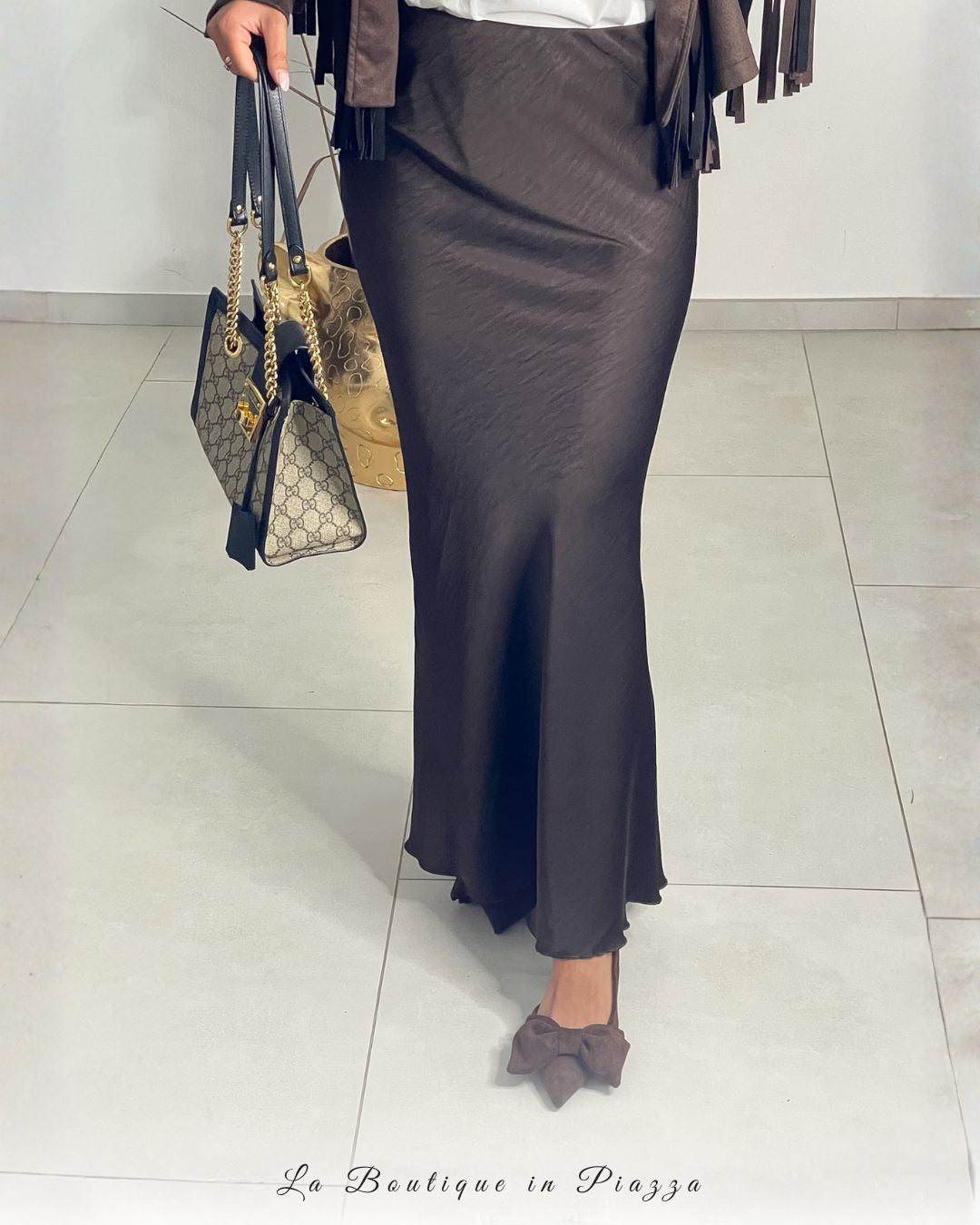 La gonna must della stagione: lunga, in raso, elegante ma comodissima. Perfetta sia con il tacco che con le sneakers per look versatili giorno e sera.