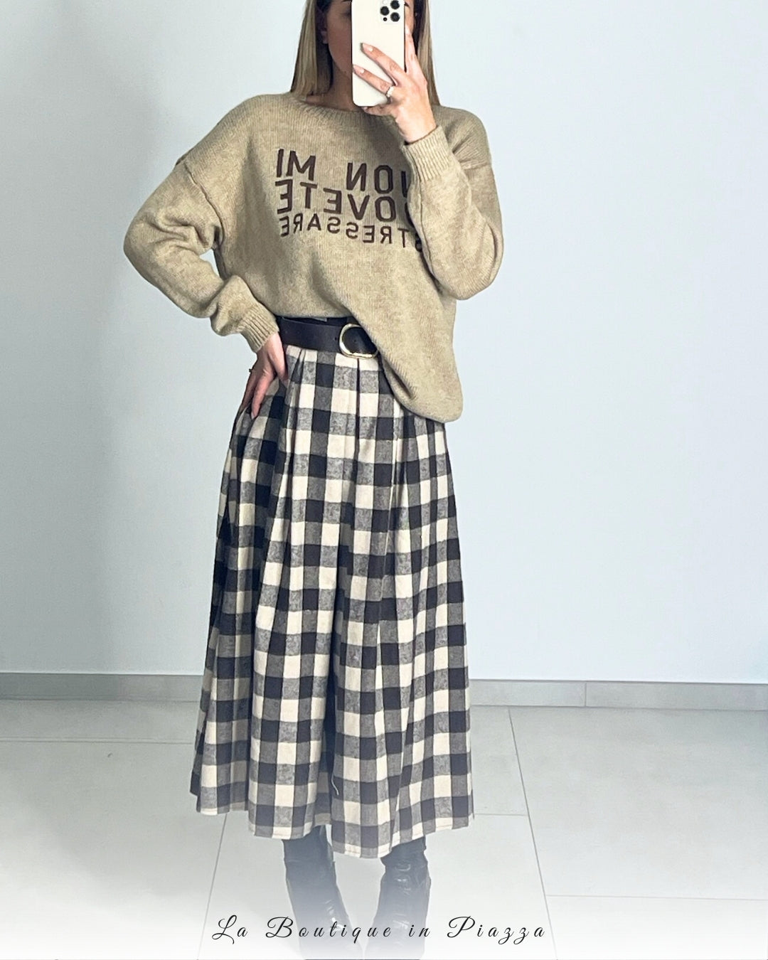 Bicolor beige/marrone, calda e lunga fino alla caviglia: ideale per l’inverno.