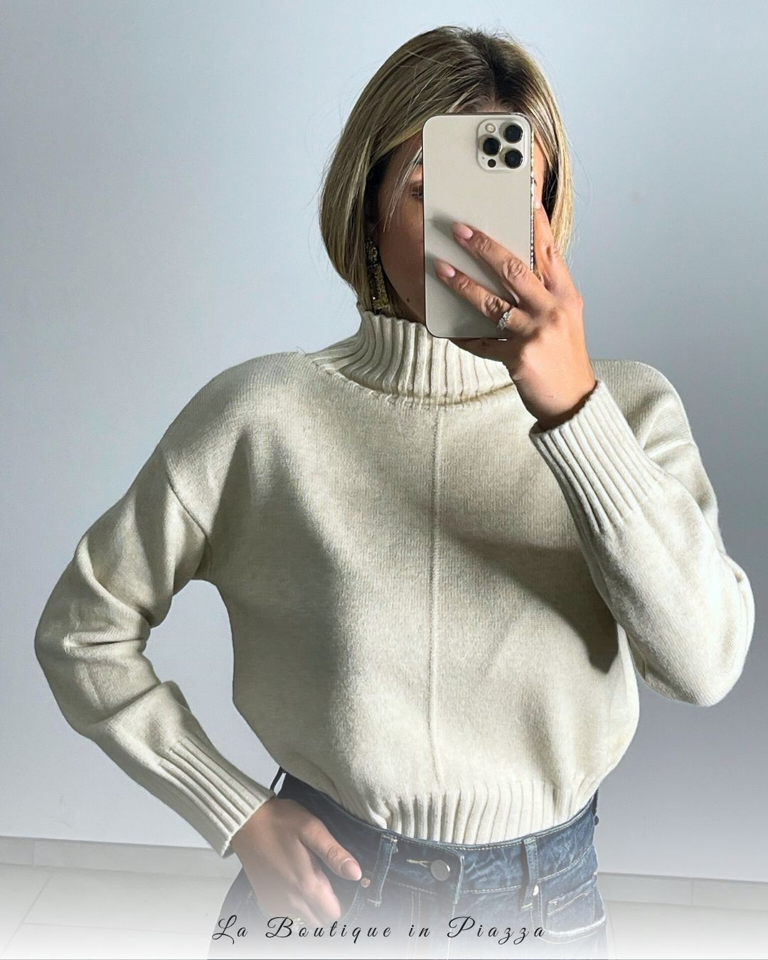 Collo leggermente alto e fit rilassato, perfetta per look comodi ma curati.
