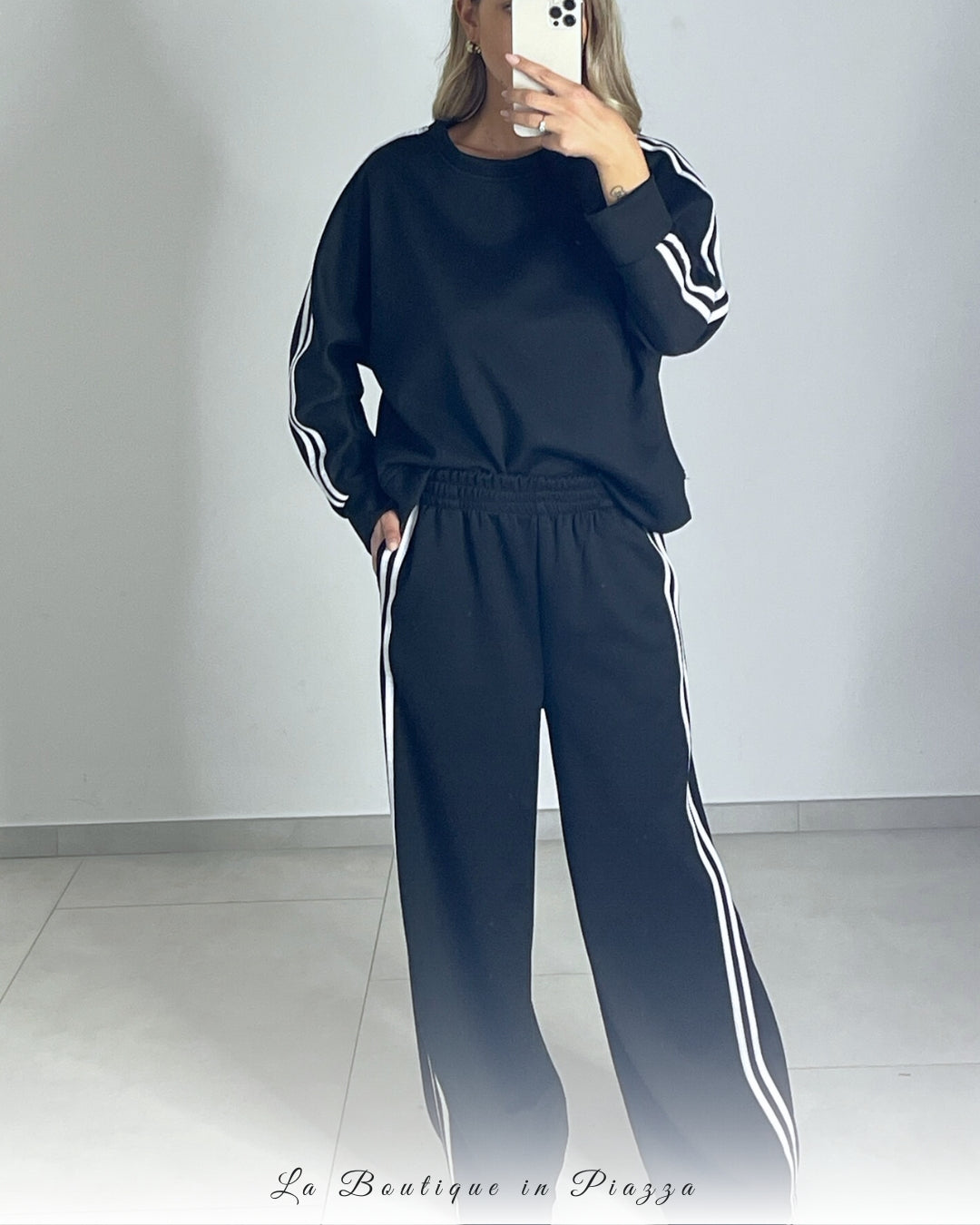 Sportiva e chic, con righe laterali che slanciano la figura.